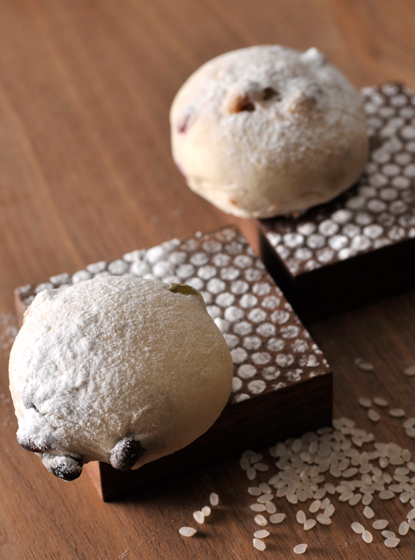 黒豆、大納言、うぐいす豆の三種の豆を、米粉のパンにたっぷりと混ぜ込み焼き上げました。優しく上品な甘みが際立った、「和」を感じさせる日本人好みの味わいです。さらに弾力のある米粉の生地が、ほっくりとした豆の存在感をいっそう引き立たせて。なめらかな生地にゴロッと大きな豆が見え隠れする、まるで豆大福のようなルックスもユニークです。