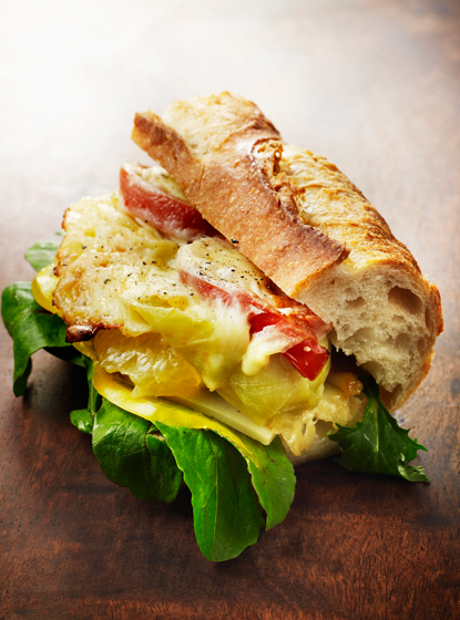 さらに、旨味とコクがあとをひく日向牧場の熟成チーズ「モナミ」や、パプリカ、日向夏も大胆にゴロッとサンド。様々な調理法で仕込んだ素材の異なる食感と、ひと口ごとに表情を変える、味わいの融合をお楽しみください。