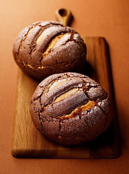 ブーランジュリーの中でもバレンタインを感じて欲しい…そんな想いから生まれたメロンパンのショコラバージョン。ほんのり甘いブリオッシュ生地を、チョコレートを練り込んだサクサクのサブレ生地でくるんでふっくらと焼き上げました。パクパクと食べ進んでしまうほど甘さと軽さのバランスが見事!センターには濃厚なアーモンド入りのキャラメルを忍ばせて…まろやかな甘さの中に、"あっ"と驚くユニークな味わいのアクセントをプラスしています。