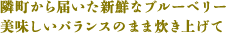 三田市の隣町・丹波篠山市で栽培を行っている「futaba農園」さんが丁寧に育ててくださったブルーベリーをたっぷり使用したコンフィチュール。1本1本の木にそれぞれ適した水分と養分が与えられ、枝や花の剪定を丁寧に繰り返すことで、一粒一粒の味と香りをしっかりと感じるブルーベリーが出来上がります。そんなブルーベリーの品種の違いによって発揮される「酸味と甘味」を、シェフ小山が一番美味しいと感じる味のバランスになるよう「futaba農園」さんにもご協力いただき常に4種類以上をブレンド。奥行きのある味わいを表現しました。隣町から届いた新鮮なブルーベリーの実を潰さないよう丁寧に炊き上げ、適度に残る粒感がフレッシュさを感じさせる、美味しいブルーベリーのコンフィチュールが完成しました。