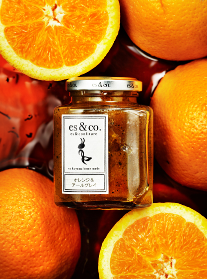 材料/オレンジ、紅茶(アールグレイ) オレンジの果肉とアールグレイの茶葉が点在するシックな色合いのコンフィチュール。オレンジの皮の旨みと香りがほんのり苦みを運ぶのと同時に、アールグレイの華やかな香りが漂う、まるでフルーツティーのような芳しさです。