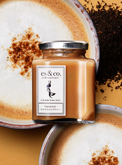 ミルクと相性の良い「ルフナ」と「アッサム」の2種類の茶葉を、リッチな4.0牛乳で丁寧に煮立たせる「hanareのロイヤルミルクティー」。このたび【co.&m.】と【hanare】がタッグを組んで、その味わいを忠実に再現したコンフィチュールを生み出しました。テクスチャーは、まったりとなめらか。深いコクのある濃厚な味わいは【hanare】のロイヤルミルクティーそのもの。茶葉の旨味までしっかりと引き出すよう、低気圧調理器“ガストロバック”を用いつつ、煮出す際に茶葉のエグみまで引き出さないよう、試行錯誤した力作です。ぜひ、hanareでのくつろぎのティータイムを思い描きながら、その味わいをお楽しみください。