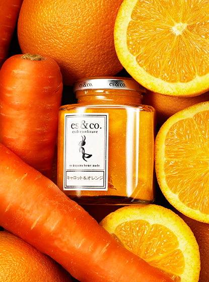 材料/キャロット、オレンジ、カルダモン キャロット×オレンジは野菜ジュースの中でも定番的な組み合わせ。爽やかなオレンジのコンフィチュールに輪切りに、スライスしたニンジンがシャキシャキの歯ごたえが加わり食感のアクセントに。清涼感のあるカルダモンが効いてあと口がスッとまとまります。