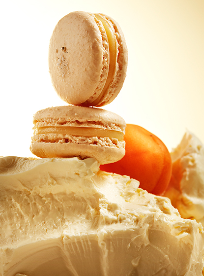シェフ小山が大好きなプチガトー「es-フロマージュ」をそのままマカロンに。2種類のクリームチーズを使ったこっくり濃厚な甘みのガナッシュに、フルーティな甘酸っぱさが弾けるアプリコットのジュレがアクセントとなって、爽やかなハーモニーを奏でます。マカロンという領域で表現したレアチーズケーキをお楽しみください。