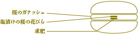 桜の香りが漂うガナッシュをほのかに輝くマカロン生地で挟みました。まるで桜餅のようなマカロン。間にモチッとした食感のぎゅう皮と、塩漬けの桜の花びらを添えました。ひと口含むと桜の花吹雪が舞い込むような、五感に春の訪れを感じさせる一粒です。