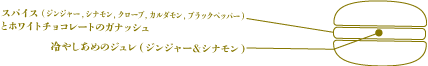 関西のローカルドリンク「冷やしあめ」をマカロンに仕立てました。ホワイトチョコレートをベースに、ジンジャーとシナモン、さらにクローブ、カルダモン、ブラックペッパーといったエスニックなスパイスを利かせてガナッシュに。センターには、ジンジャー&シナモンのジュレをしのばせました。繊維質を感じるドライタイプのしょうがを用いることで、かむほどにしょうが本来のふくよかな風味がスパイスとともに花開き、心地よい辛みと清涼感の余韻がじんわりと続きます。関西の夏の味わいを、個性豊かなスパイス使いでエスコヤマ流に仕立てたマカロンは、新しいのにどこか懐かしい、思わずワクワクするような味覚との出会いを届けてくれることでしょう。