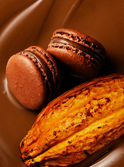 ミルキーさを醸しつつもカカオらしさもしっかりと味わえる、そんなバランスを追求。香り高く、ナッツのような香りが特徴のパプアニューギニア産カカオに生クリームを合わせ、濃厚なミルクチョコガナッシュに仕立てました。食べてみると驚くのは味わいの”奥行き”。その秘密はセンターに忍ばせたジュレショコラ。水にカカオフルーツのピューレを合わせることで、素材本来のフルーティーさがさらに際立ちました。2タイプのガナッシュを同時に味わっていただければ、このカカオへの理解が深まることでしょう。