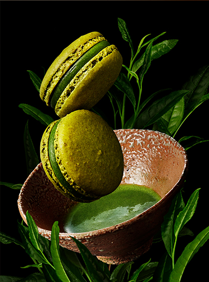 高級煎茶の「玉露」に使用されることの多い品種「五香」を贅沢に使用。その名に相応しく香りは芳醇で、甘味、旨味が強く、驚くほどにクリーミー。そんなシングルオリジン抹茶のポテンシャルをひと粒で最大限に生かしました。ホワイトチョコレートに五香を混ぜ込んだまろやかなガナッシュと、その中からとろっと顔を出すミルキーなガナッシュ。さらに生地にも五香を混ぜ込み、抹茶らしい奥深い色合いを表現。お口を去った後にも続く長い余韻をご堪能いただけます。