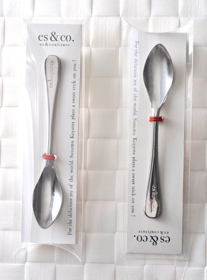 エスコヤマのコンフィチュールの瓶は、滑らかな曲線で描かれる柔和かつスタイリッシュなフォルムが個性的。しかし、かねてより「上の角の隅に残ったコンフィチュールまでも食べたいけれど、普通のスプーンだとすくえない」というお客様からの声をいただいていました。そこでこのたび新しく作ったのは、独特なこの瓶の形に先がちょうどフィットする専用のスプーン。気持ちがいいほど角のラインにぴたりと沿うので、最後のひとすくいまで逃すことなく、しっかりとおいしさを堪能していただけます。