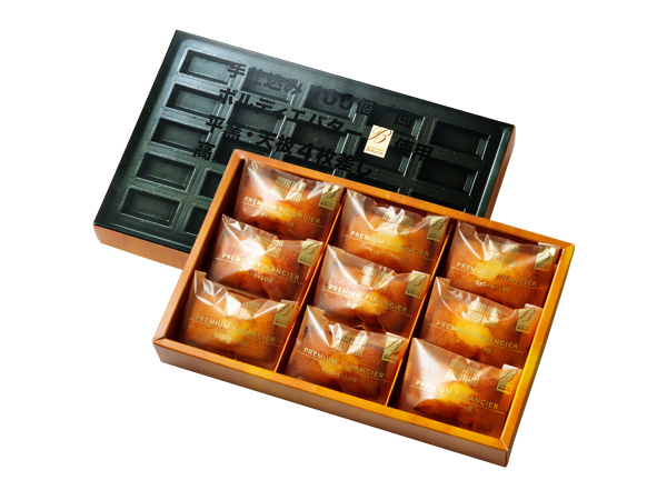 皆さんはご存じでしょうか?フィナンシェは焼き立てから粗熱が取れた頃が、一番おいしいということを。スペイン産マルコナ種のアーモンドプードルを用い、兵庫県産小麦100%で仕上げるこの特別なフィナンシェ生地に使われているのは、ヨーロッパの星付きレストランで食中にいただくバターのほぼすべてに用いられ、それぞれのお店からg数を指定して注文を受ける、フランス・ブルターニュ地方生まれの「ボルディエバター」です。そのプレミアムなバターを、熱々の澄ましバターにして生地にたっぷり混ぜ込みました。そしてバターの温度が下がらないうちに1個ずつスピーディーに型に絞り、240℃に熱した平窯・天板4枚差しのオーブンへ。一度にオーブンに入れるのは100個まで。この分量は、エスコヤマのキッチンにあるオーブンの体積や熱量にピッタリのベストな数で、いくら効率が良くても、一度にこれ以上多くの数を焼くことはありません。そして11分後、何とも芳ばしいバターの香りを放ち、黄金色のフィナンシェが焼き上がります。その後、粗熱が取れてすぐの表面は驚くほどサクッと、中はしっとり、ほろりとした絶妙の食感に。普段はギフトボックスの中で、ひとつのピースでしかないフィナンシェにも、そんな輝ける瞬間が存在する。そのキッチンの裏側の真実を、誰よりもリアルにお菓子を愛するみなさんに知っていただきたくて、このプレミアムなフィナンシェを完成させました。