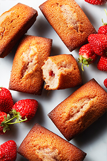 エスコヤマ自慢のフィナンシェの春限定苺バージョン。フィナンシェらしい、バター&アーモンドならではの豊かな香りが広がる生地には、シェフ小山のショコラティエとしての感性を生かし、アクセントとしてフレッシュな苺をピューレ状に加工したものとカカオバターを練り込んで。苺とカカオバターを合わせることで焼き菓子でも苺を再現できるようになりました。アーモンドと苺は植物学的にも同じバラ科で、相性はDNAのお墨付を与えてもらっているようなもの。さらに、苺のジューシーさをストレートに感じるように自家製の苺バトンショコラを閉じ込めています。ナッティなコク、苺の甘味、ジューシーな酸味のマリアージュをお楽しみください。