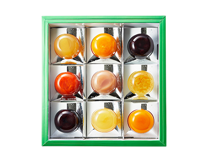 「旬の味わい」と謳われ、フレッシュな果肉を味わうことが王道と思われがちなフルーツたち。しかし、それぞれの素材と向き合えば向き合うほど、「このフルーツの美味しさをもっとたくさんの人に知っていただきたい。届けたい」と思う気持ちが湧いてくるのは、パティシエの性分です。今回は、そんな思いを込めて、パティシエとしての感覚をフルに生かし、「いかにフルーツを美味しく召し上がっていただくか」を考え抜いて、みずみずしいゼリーに仕立てました。果肉をコンポートにしてそのものの味を際立たせたり、皮ごと使って甘味とほのかな苦味を絶妙なバランスで合わせたり、生産者の皆さんから受け取ったフルーツたちの命をできるだけ使い切り、魅力をしっかりと伝えられるように香りや食感、甘味のバランスまでとことんこだわったアイテムです。