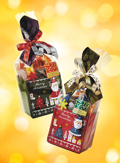 クリスマスの夜の街を、空からサンタが眺めているようなデザインのギフト。4色のシンプルな色づかいとノルディック柄のようなミニマムなデザインは、お子様から大人の方まで贈る方を選ばないギフトです。また、取っ手についたサンタはボールチェーンになっているので、バッグやポーチなどお気に入りのものに付け替えることができます。ネイビーのサンタがおしゃれなレッドと、クリスマスの王道、赤いサンタが目を引くグリーンのトートからお好みの方をお選びください。