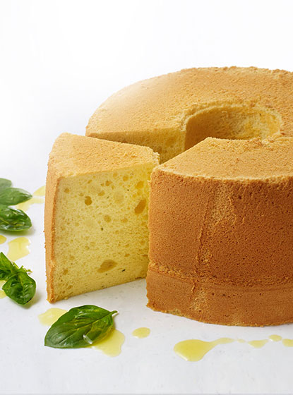 ハーブ農園に吹き抜ける風のように軽やかで、すっと心地良い清涼感。その正体は「特製バジルオイル」。オリーブオイルにフレッシュバジルを漬け込み、爽やかな香りをそっと生地に閉じ込めました。甘さはほんのり、オリーブとバジルの風味が鼻先をくすぐり、断面の色合いも涼やかな印象です。