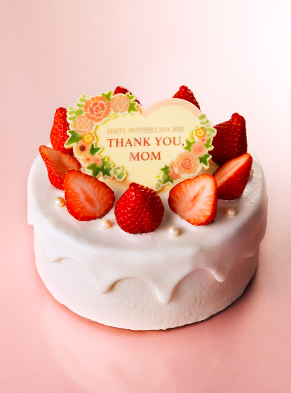 ふんわりと弾力のあるジェノワーズ生地に、コクがありながらもあっさりとしたクレームシャンティ、そして真っ赤に熟した苺をサンド。バラやカーネーションで華やかにデザインにしたプレートには「THANK YOU,MOM」と、“皆さまにとっての母の日が幸せな一日でありますように”と願いをこめた「HAPPY MOTHER'S DAY」のメッセージを。ご家族皆さまでお母さまへ日ごろの感謝の気持ちをお伝えになる……、そんなシーンを演出する一助けになればとてもうれしく思います。