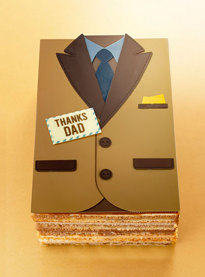 今年は2種類のデザインをご用意。 「お父さんはこっちが好きだろうな」「お父さんにこんなスーツを着てみてほしい」そんなふうにお選びいただくのもひとつ。 父の日にケーキを囲んでワイワイと団欒――特別な時間を過ごしていただくお手伝いができたらとてもうれしく思います。
