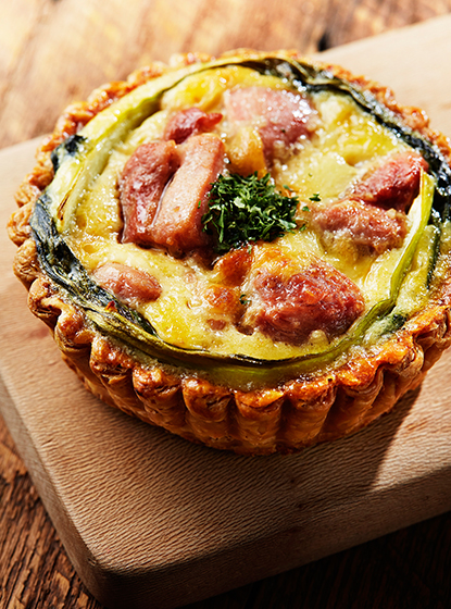 シャキシャキとしたチンゲン菜に新鮮な朝引き地鶏がマッチした中華風キッシュ