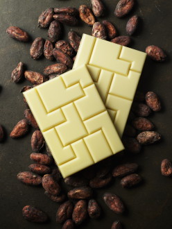 実はこのホワイトチョコ、2018年のサロン・デュ・ショコラでクーベルチュリエのモラン氏が「チャンチャマイヨのココアを作った」と紹介してくれた時に閃いた「ココアがあるならカカオバターがあるはず。それでホワイトチョコを創ってみてくれないか?」というリクエストから生まれたものである。そこから新たな作品が生まれたのは感慨深い。