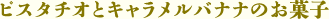 「ピスタチオを使って、驚くほどふんわりと軽く仕上げよう」と、試作を重ねた、お口の中でほろっとほどける生地が主役。ダックワーズにピスタチオを混ぜ込んだ生地とリンクさせたのは、フレッシュバナナをふんだんに使ったキャラメルバナナクリーム。ピスタチオのナッティで濃密な風味と、ほのかに酸味をたたえたキャラメルバナナの甘みとの、芳醇なマリアージュをお楽しみください。