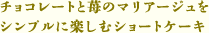 これまで数々のショコラアイテムを生み出してきたシェフ小山が、「とことんシンプルに、小さなお子さまからおじいちゃんおばあちゃんまで幅広い年齢層の皆さんに、旬の苺の美味しさとショコラのマリアージュが生み出す美味しさを伝えたい」との思いで生み出したのが、この苺ショートのショコラバージョンです。苺の甘酸っぱさとのマリアージュを生み出すのは、カカオ香るチョコレートのスポンジと、底に重ねたマダガスカル産カカオのビターチョコレートのガナッシュ、フランボワーズのコンフィチュール。そしてコクがありながらもあっさりとした後口のエスコヤマ自慢のクレームシャンティ・・・・・・。つやっとして苺に潤いを与えるのは、このケーキのためだけに作られた「生クリーム+寒天」の少~し固さを感じる程度の食感が新しい、乳のコクと旨味を活かす特別な“グラサージュ寒天”。食感のアクセントには、ザクザクッとしたショートブレッドをボトムに配して。チョコレート屋さんとパティスリーが共存するエスコヤマならではの表現をお楽しみください。