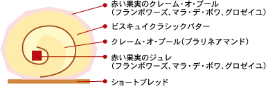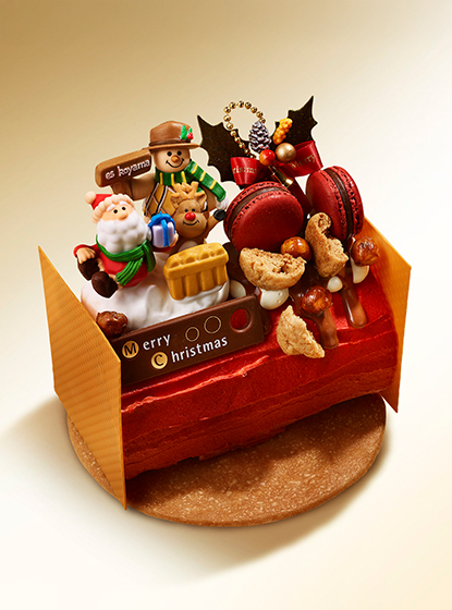 「フランス語で「クリスマスの薪」を意味する伝統的なクリスマスケーキ『ブッシュ・ド・ノエル』。今年は真っ赤な切り株で、食卓を彩ってはいかがでしょうか。きめ細やかな生地に、北海道産原乳にこだわった生バターとアーモンドプラリネを合わせたクリームを捲き込み、センターには濃厚な味わいのフランス苺(マラ・デ・ボワ)とフランボワーズ、グロゼイユを濃縮させたジュレを忍ばせて。全体を包み込むクリームにも同じく3種ベリーを使用しました。その甘酸っぱさを受け止めるのは、アーモンドの深いコク。心地よい口どけに余韻をしっかりと感じつつ、軽やかな味わいに、ついぺろりと平らげてしまいそう。ボトムのショートブレッドはザクザクとした食感で、ちょっとした箸休めに。飾りの小さなサンタやトナカイ、雪だるまは聖夜を賑やかに祝ってくれているよう。伝統とモダンな遊び心が響き合う、クリスマスにふさわしい一本です。