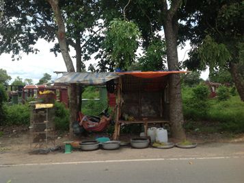 美味しい食事の後は、農園の近くの森を散策。この国の方は信仰心が強いらしく、農園の中にも小さな寺院がありました。森に点々と椰子葺きの小さな家が並びます。 「とても面白い建物ですね。あれは伝統的な建築様式ですか?」とガイドのブーさんに言うと、 「昔の農家です。いやあ、貧しいだけですよ。」と返ってきました。最近建てた家はコンクリート製のものがほとんどでした。 貧しい国に行くと、昔からあるモノややり方を否定しがちな気がします。それがいかに優れたものであっても。それは恐らく進歩や発展のイメージとはかけなれた、時代遅れのモノのように思えるからなのでしょう。進歩とは往々にしてイメージを優先してしまいます。日本も同じ道をたどって今に至ります。しかし、 「進歩や発展ばかりを求めてすぎて、その過程で失ってきたものが最近、とても気になる。」と小山シェフはよく言います。 「こういった発展途上の国を訪問すると、日本は何を失ってしまったのか、ということが何となくわかるから、年に一度はこのような国を訪れたくなるんやなぁ。」とも。