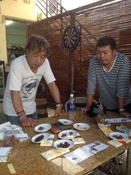 ミルクチョコレート以外にもいろんなチョコレートを頂きました。そしていろんな意見の交換をすることができました。カカオ農園の現地で見てきたもの、そこで感じたものを表現することを大事にしている小山シェフにとって、このテイスティングはとても大事です。わざわざフランスから沢山のチョコを我々のために持ってきて下さって本当にありがとうございました。反面、ハンさんたちもとても勉強になった様子。なにせ、コヤマシェフが求めるものは今後世界のチョコレート市場全体で求められる可能性のあるものばかり。ハンさんの様に素材を作る方々が今後どういうものを作ればよいのか、という指針をコヤマシェフから得たんだと思います。それに、コヤマシェフがここのチョコを使えば、品質や味を保証されたようなもの。世界のショコラティエに売り込むことが出来るかもしれません。とても良い関係だと思いました。こうした関係をコヤマシェフは世界各地で築き上げています。