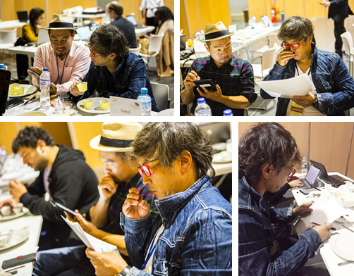 審査用のチョコレートは一つ一つのポーションは小さいのですが、たくさんのティスティングしなければならないため、ぼくは途中から食べることが苦痛になってきましたが、小山シェフは黙々とテイスティングを続けていきます。