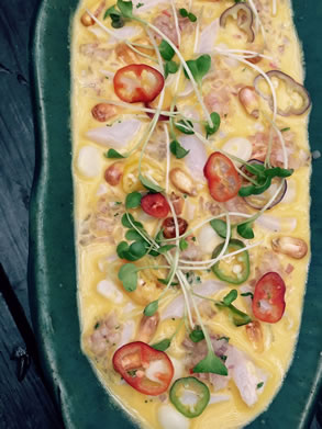 「これは、刺身のような薄造りやろ。このほうが日本人にとって食べやすい。それに、このソース、セビーチェのソースに比べると、とろみのあるソースがかかってるだろ。日本はとろみ文化の国やから、このソースの感じも日本人好みだと思う」と小山シェフが解説してくれました。