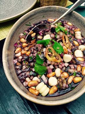 そもそも、ペルー沖は南極からのフンボルト海流と赤道メキシコ沖からの暖流がぶつかる場所で、とても良好な漁場となるそうでです。生魚を食べる文化はインカ時代のころにはあったそうですが、セビーチェに使うレモンや玉ネギはこの国にはもともとありませんでした。コロンブス新大陸発見以来、ヨーロッパ人が持ち込んだものだそうです。あと、セビーチェによく使われているコリアンダーはアジア原産。アジアから海路でイスラム圏に入ってアフリカを経由して、アメリカ大陸にたどり着いたそうで、コリアンダーはいつの間にかセビーチェにはなくてはならない素材として使われるようになったそうです。まさにフュージョン料理といえる一品がペルーの伝統料理として、国民に認識されているのです。ペルーは原住民の高度な食事文化の上に、ヨーロッパからの移民、奴隷貿易で連れてこられた黒人、中国人、日本人など本当に多くの国の移民たちが持ち込んだ文化が入り混じって、現在のセビーチェになったのでした。