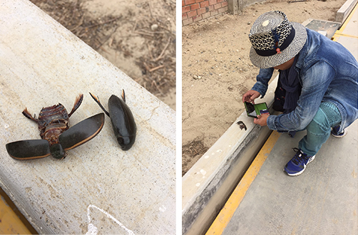 「ガムシとゲンゴロウの違いはな・・・・・・」とゲンゴロウとガムシの違いや小さいときにこの甲羅の艶に驚いた話、後ろ脚にヒレがあることが水中生物の証であること、光に集まる習性など、カカオ農園に行くまでの道中、虫博士コヤマススムのガムシ談義が続きました。小さいとき、ゲンゴロウとガムシの違いを知った時の感動を今でも鮮明にお話しされていました。またまた、話はそれますが、これもコヤマシェフのモノづくりを理解する上でとても大切な一つの軸です。今回の小山シェフのプロフィール写真。虫眼鏡を持ったコヤマシェフと小さい頃の小山シェフ。自分の好奇心が赴くまま、虫眼鏡をもっていろんなことを観察し、調べ、自分が見つけた感動や発見を両親や近所の人達に発表していたあの頃のスタイルと、大人になった今でも自分の好奇心を触覚にして、いろいろな産地に赴き、そこで感じたインスピレーションを形にして、発表してゆくことは、精度の違いこそあれ、まったく同じで、これこそ、コヤマシェフのモノづくりの根幹です。