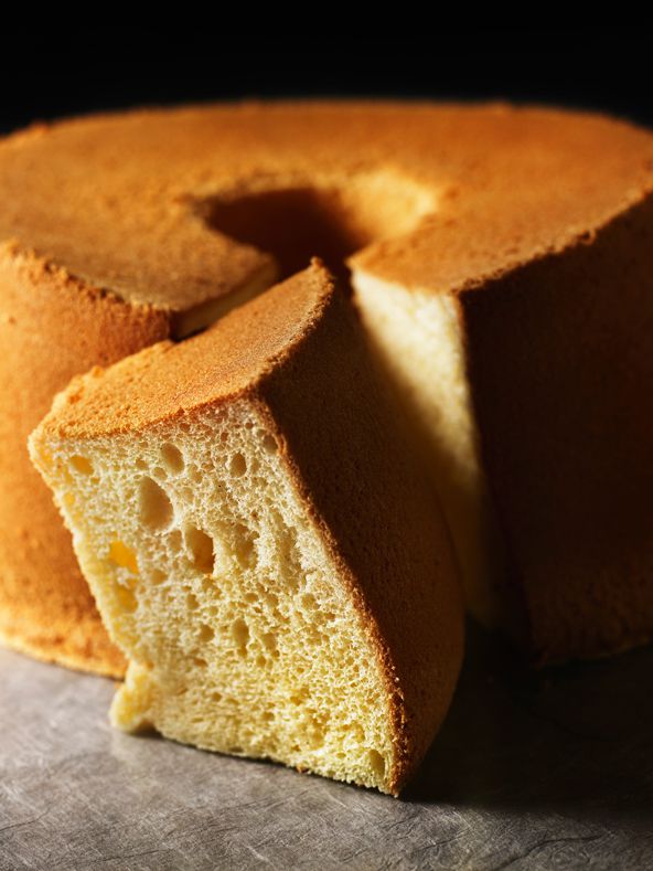To make delicious chiffon cake, Koyama Susumu follows a strict set of rules. First of all, it must be light enough to eat like a slice of breakfast toast with a soft texture and deep flavor. It must also be fluffy and resilient enough to puff back up after being pressed down with a finger. All of these conditions are satisfied with a unique recipe that calls for thoroughly emulsifying the eggs, oil, and milk, and mixing them together with meringue made with a minimum of sugar. In the process of testing various recipes, Koyama realized he had truly achieved something special, so he added his famous "es" prefix to the cake's name. Choose from one of several varieties, featuring the refined aroma of Madagascar vanilla, "vanilla" imbued with the mature taste of cognac, or the fragrant Earl Grey flavor.