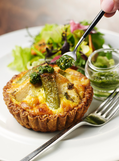 バジルの香味とバラエティ豊かな食感が食欲をそそる 食いしん坊万歳なキッシュ