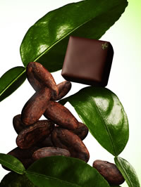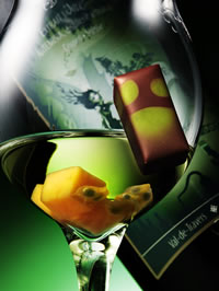 アブサンが持つ複雑な香味、スパイス系のハーブから作られているが故に時折感じるほのかなスパイシーさが、ペルー・チャンチャマイヨ産のショコラ・オレ(カカオ分48%)の深みのある酸味やカカオ感と絶妙にマッチ。さらに、ボトムに敷いたマンゴーパッションのパート・ド・フリュイのトロピカルな酸味と香りがアクセントとなり、より味わい深い一粒に仕上がりました。