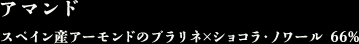 ほのかにスモ―キーで芳しいアーモンドのプラリネを、華やかで力強いアロマを持つショコラ・ノワールが引き立てます。 カカオの香り広がる大人の味わいが魅力です。