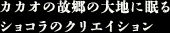 高原の気候に育まれたピュアなカカオは、ジャスミンやシトラス、森やバナナを思わせる、爽やかで芳わしいアロマが特徴。