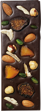 クリオロ種とフォラステロ種の高貴なDNAを受け継ぐメキシコ産カカオ。 その香り高く繊細な風味を生かしたチョコレート(カカオ分66%)に、アーモンドやヘーゼル、アプリコット、いちじくを贅沢に散りばめました。