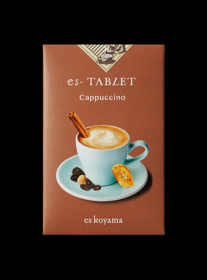 「カフェを『喫茶店』と呼んでいた時代、『カプチーノ』を注文すると、フォームドミルクの上に、オレンジの皮を削ったもの、ココア、シナモンがかかっていた」という、そのイメージをそのままに創り上げたタブレット。外側は、コロンビアのコーヒーをコンチングの段階から混ぜ合わせてそのアロマをいっぱいに巻き込んだチョコレートをコーティング。中は自家製のプラリネノワゼットに、シナモンを少々とみかんのドライチップスを砕いて混ぜ込みました。時間差で表れるそれぞれの素材とその味わいは立体感を持ってお口の中に広がり上質なカフェ・タイムを演出してくれることでしょう。