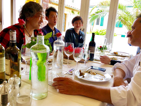 場所を移動し、ランチの時間です。 「MeNDI ALDE」の料理と地元のワインを全員で頂きます。 ちなみに私はバマスさんのお隣、小山シェフの斜め向かいに座らせて頂き、お食事をご一緒させて頂けました!本当にありがとうございます。