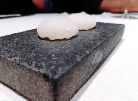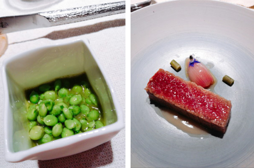 「Red tuna belly」 ミナミマグロのトロにトマト、エシャロット、西洋わさびを添えたもの。一瞬、お肉!?と思うようなジューシーさで口に入れるとスッととろけるやわらかさでした。添えられているトマトの酸味、エシャロットの甘味、わさびの優しい辛みが何とも言えないバランスでトロを引き立たせていました。