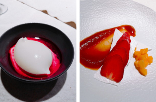 薄いメレンゲの上にイチゴ、マンゴーそしてリンゴのソースが添えられていました。