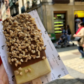 豊富な味の種類に加えて、トッピングでビター、ミルク、ホワイトの三種類のチョコレートのどれか1つを選ぶとコーティングをしてくれます。さらに、アーモンド、ヘーゼルナッツ、ビスケットなど自分の好きなものをかけてくれて、オリジナルのアイスバーを作ることができました!カスタマイズが出来るのはとても楽しかったです!シャーベットのような食感ですが味は濃厚でした。